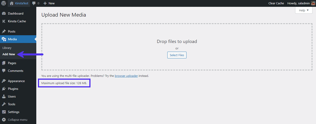 同样,您可以在此处看到最大128 MB的上传文件大小。