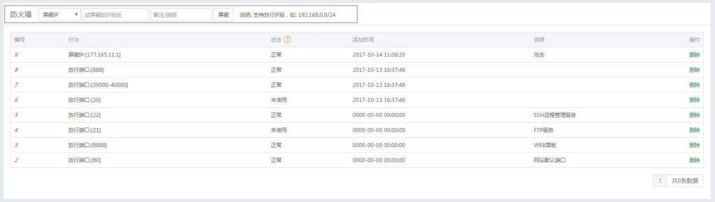 宝塔面板提供屏蔽IP工具允许您阻止单个IP地址以及IP地址范围,而无需编辑Web服务器配置文件。