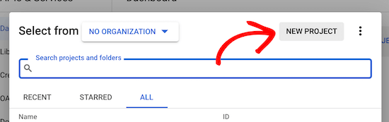 要创建新API,首先单击屏幕顶部的“Select a project”下拉菜单。