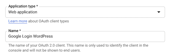 这将打开一个表单,您可以在其中为您的网络应用程序命名。该名称仅供您自己参考,不会向您的访问者显示。