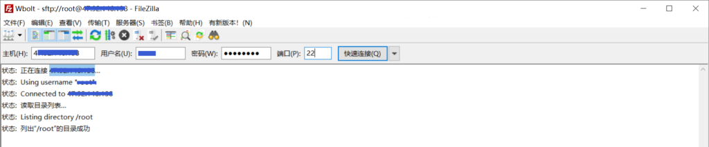 FileZilla登录屏幕