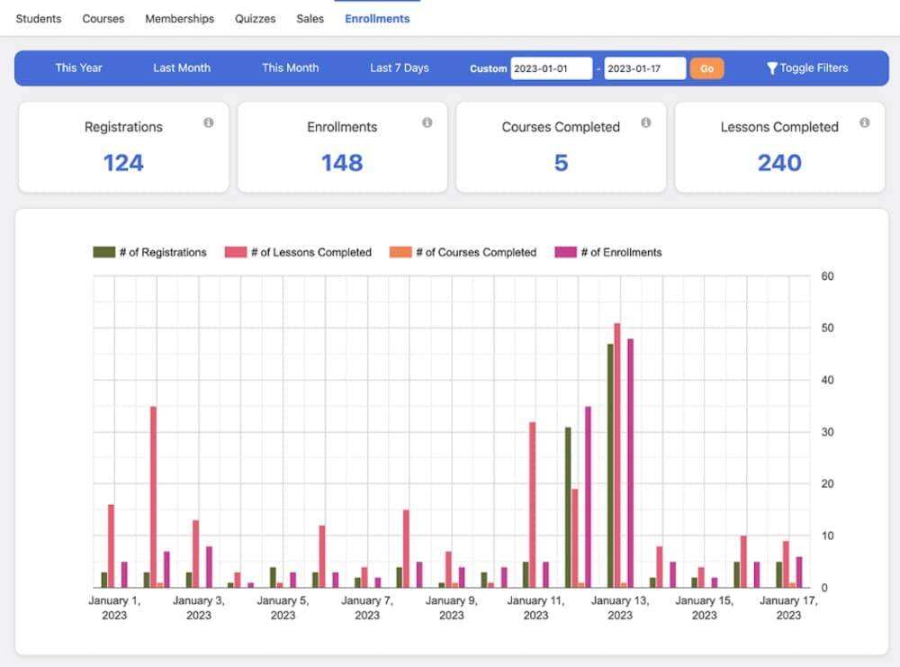 查看 LifterLMS 报告控制面板。