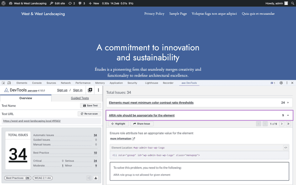 同时使用这两种工具是测试可访问性的绝佳方法。例如,您可以先快速进行 axe 测试: