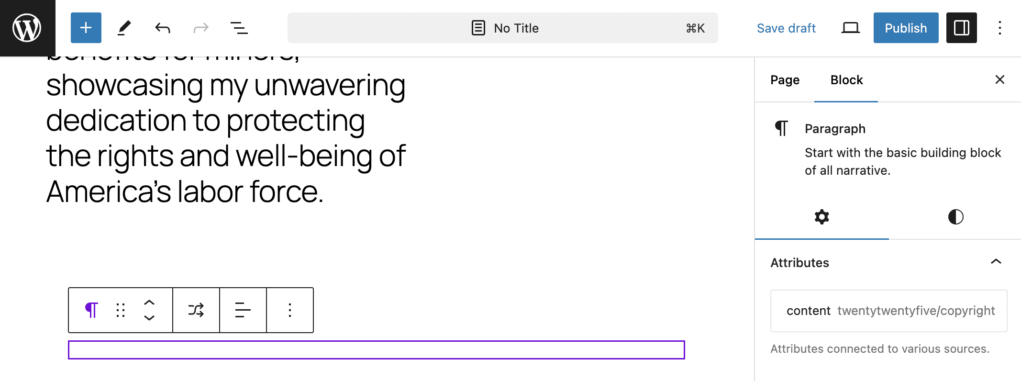在这里,版权样板的 content 属性与  Twenty Twenty-Five 主题中定义的源相连。