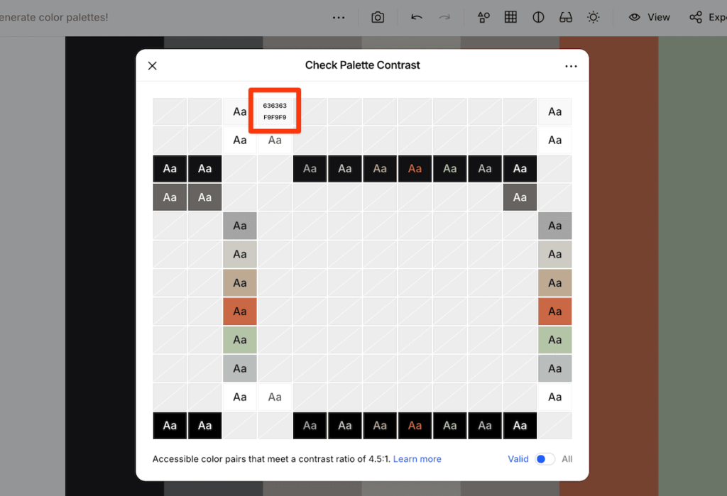 现在,我们需要一种适合我们需要的颜色。Twenty Twenty-Four 默认变体的调色板非常出色,在专门的对比度检查器中进行检查后,我们就会有一些想法: