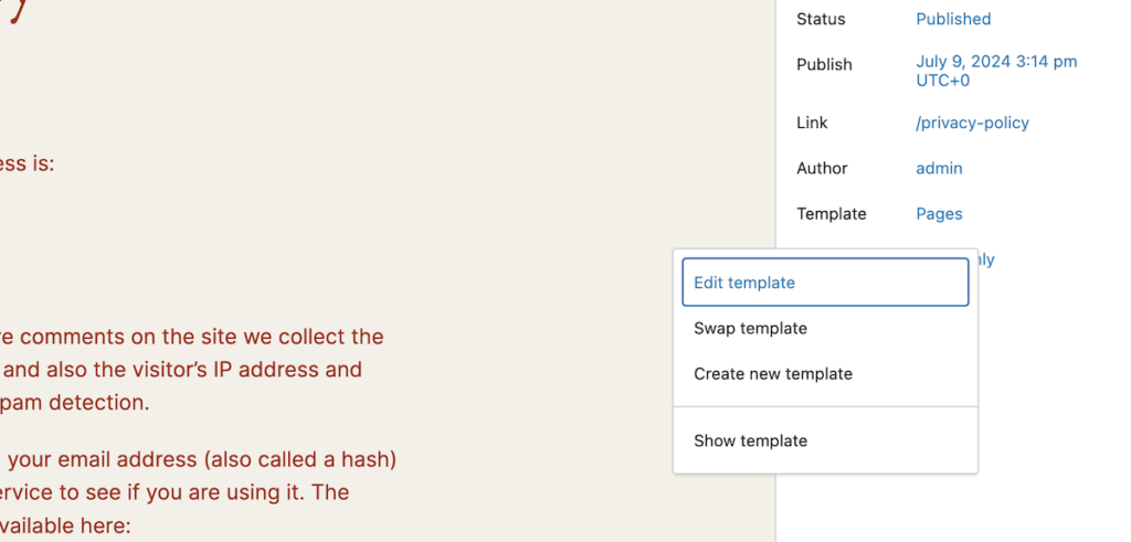 在 WordPress 网站编辑器中选择编辑、交换、创建或显示模板。