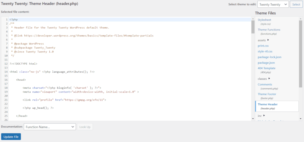 现在,您要将脚本粘贴到网站的头部。为此,你需要编辑网站的 header.php 文件。