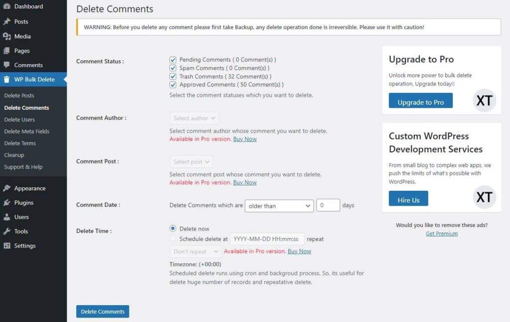 有许多插件可以帮助你清除评论。第一个是 WP Bulk Delete。
