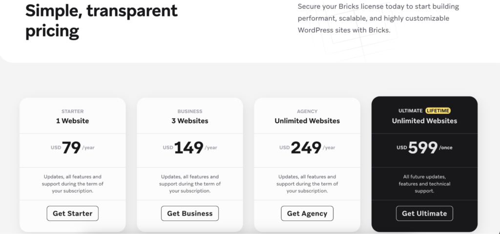 Bricks Builder 的定价结构。