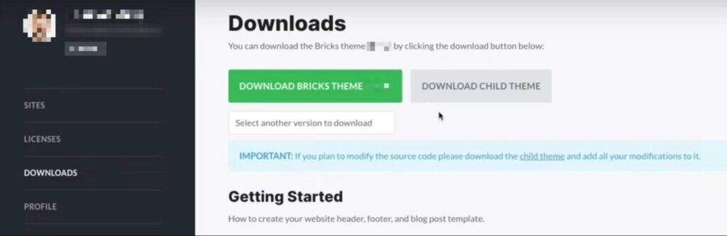 Bricks 是一款需要付费订阅的高级主题。要使用它,您需要购买其中一个计划。付款后,您可以在仪表板上下载一个 zip 文件,该文件可以上传到您的 WordPress 网站,同时还有一个许可证密钥,可以在您的 WordPress 安装中激活 Bricks。