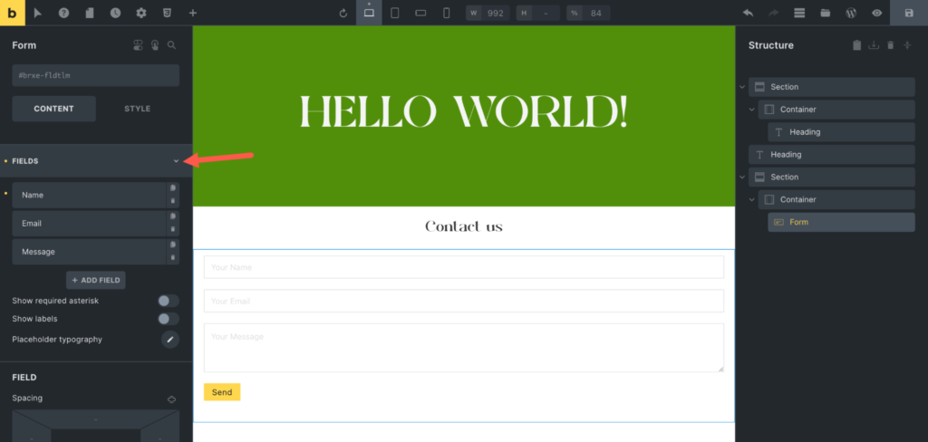 在 Bricks 页面添加表单元素。