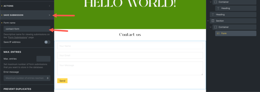 接下来,单击 Save Submission 设置,为表单命名。该名称将用于访问表单中的数据。