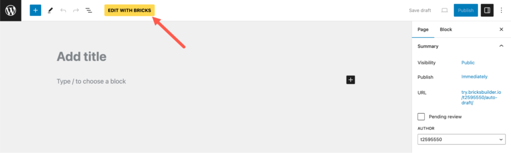 单击 “Edit with Bricks” 启动 Bricks 页面生成器。