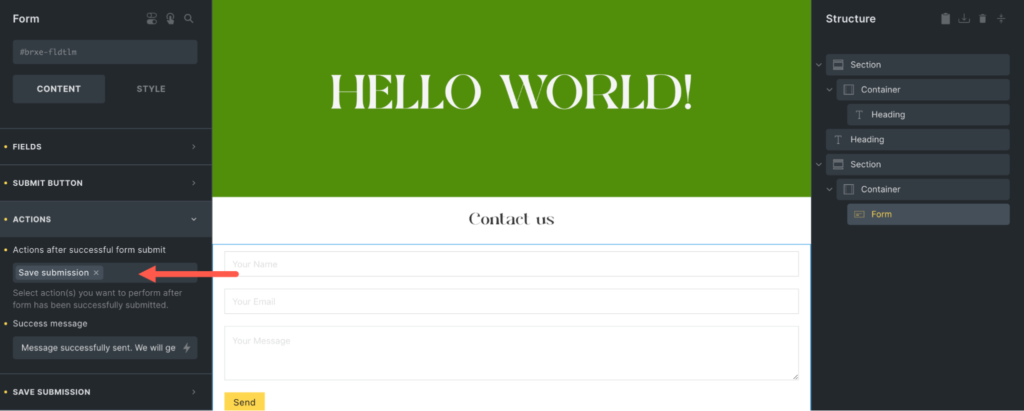 使用 Bricks 处理表单提交。