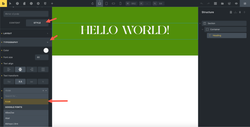 在 Bricks 界面中使用 Bricks 自定义字体。