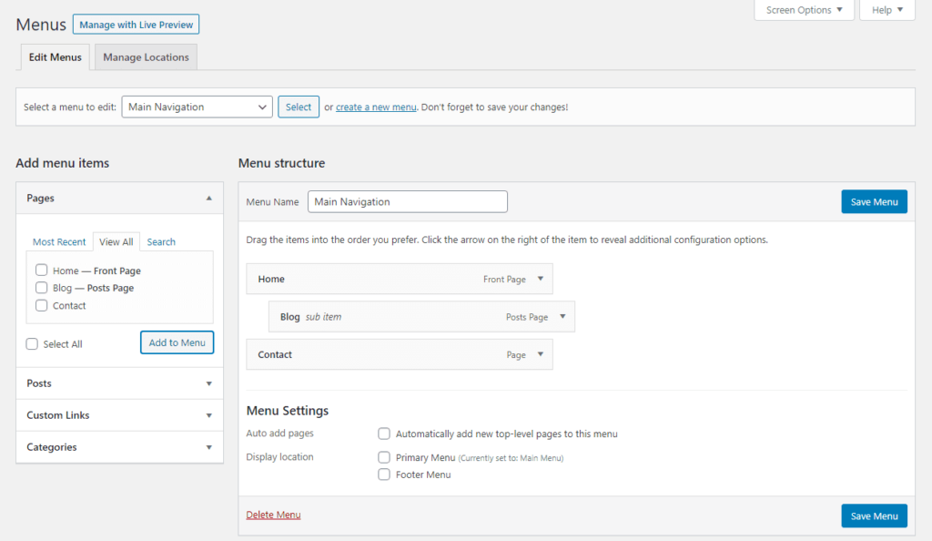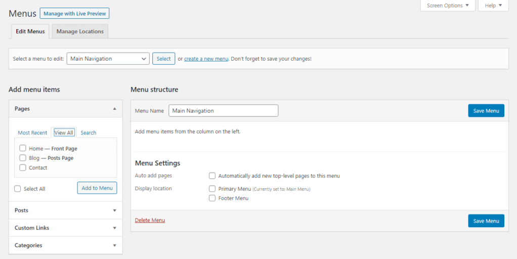 常用的选项包括页脚、页面顶部和侧边栏(左侧或右侧)。如果默认菜单选项对你来说还不够,这里有一份最佳插件列表,可以扩展你的菜单功能。