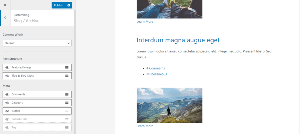 如果你不想使用主页的某些部分,可以使用主题定制器将其移除。