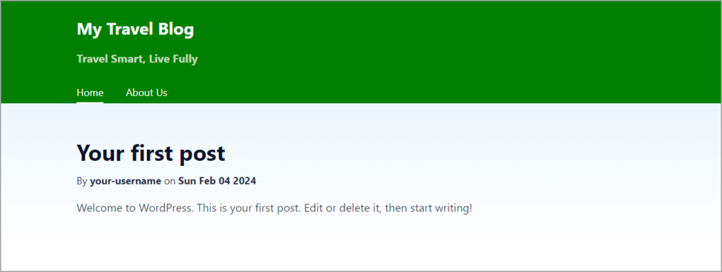 保存更改后,Frontity 将重新加载网站,页眉的变化如图所示: