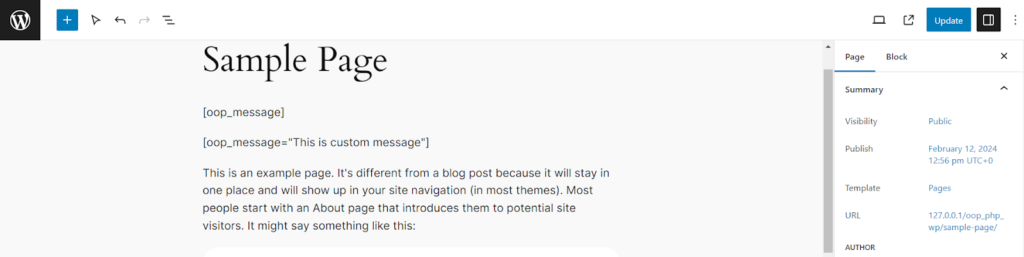 发布或更新 page/post 后,您会看到简码显示的信息。