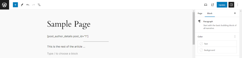 当添加到文章或页面时,它会显示文章作者(使用 WP_User 类)和文章本身(使用 WP_Post 类)的详细信息。
