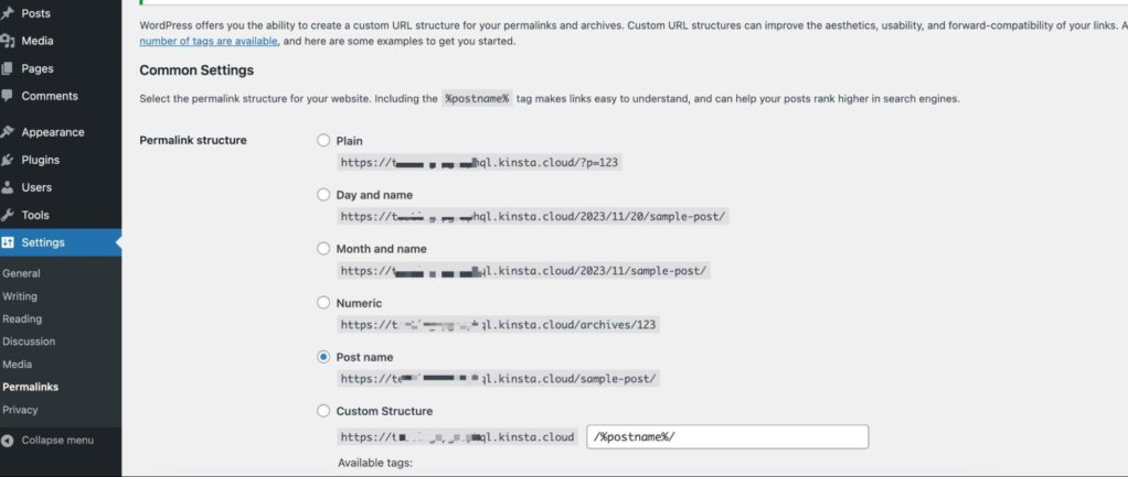 如果您在访问 http://yoursite.com/wp-json 时默认未启用 JSON API,您可以在 WordPress 面板的 “设置” 下打开 “固定链接“,然后选择 “文章名” 或除 “朴素” 之外的其他任一选项来启用它: