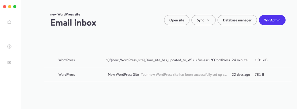 或者,您也可以使用本地 WordPress 开发套件 DevKinsta。该工具使用 MailHog 作为电子邮件客户端,因此您可以在一个地方管理本地网站和电子邮件: