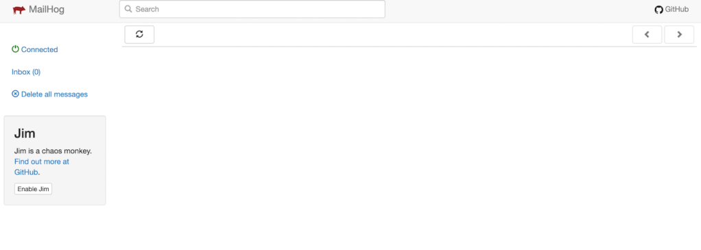 设置好 MailHog 后,就可以打开网页浏览器。然后,访问 localhost:8025 或 127.0.0.1:8025,这将带你进入 MailHog Web UI。