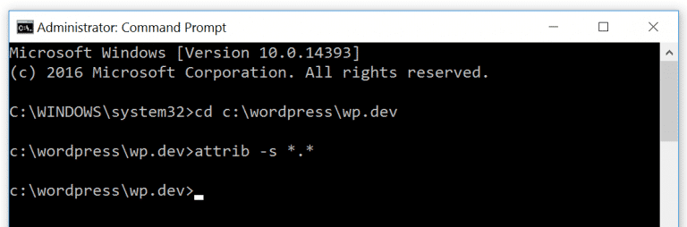 要解决此问题,只需以管理员身份打开命令提示符,然后在WordPress目录文件夹中运行以下命令: