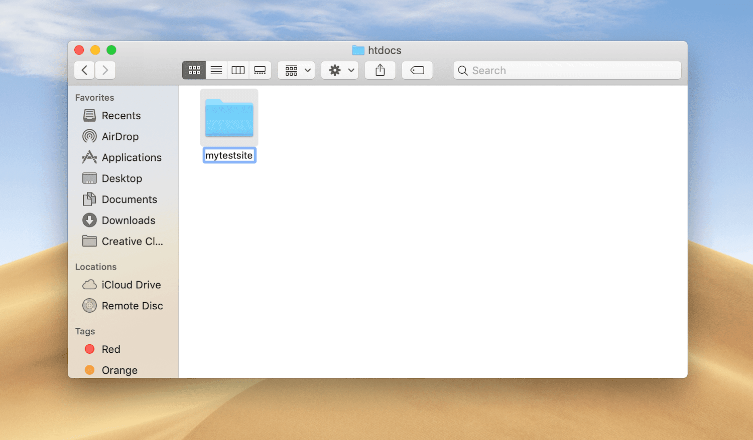 在该文件夹内,粘贴刚复制的WordPress文件夹。建议将其重命名为“mytestsite”或类似的名称: