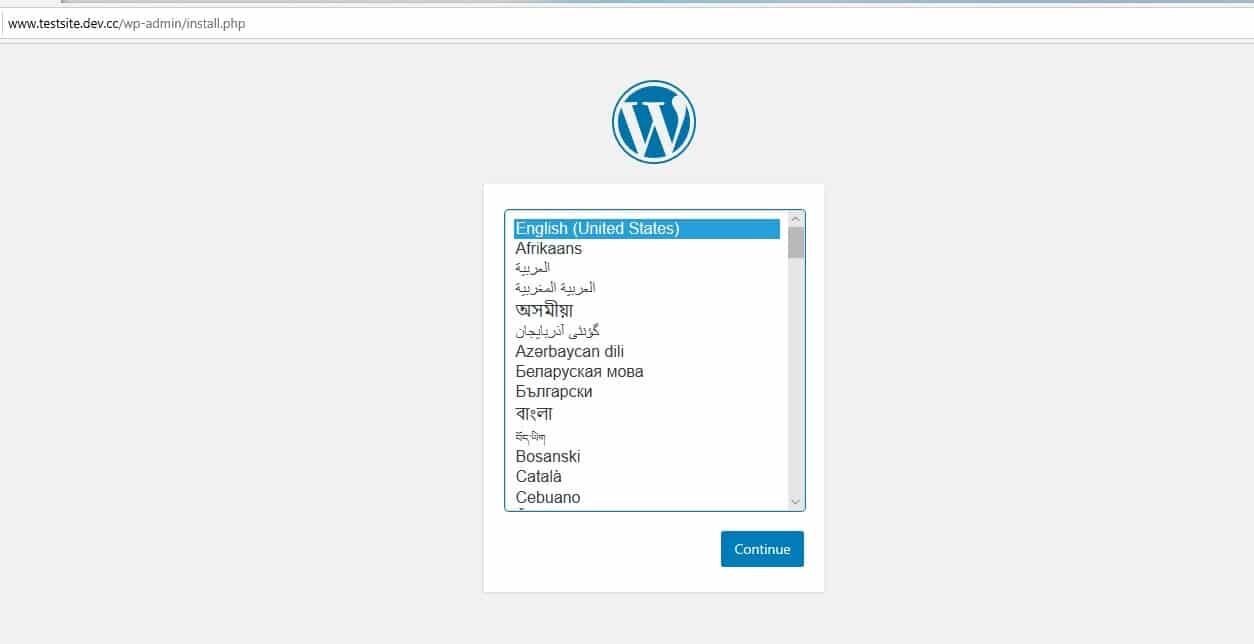 当您单击前面提到的链接时,本地WordPress网站将在浏览器选项卡中打开,经常常规的WordPress安装步骤(与线上安装步骤一样):