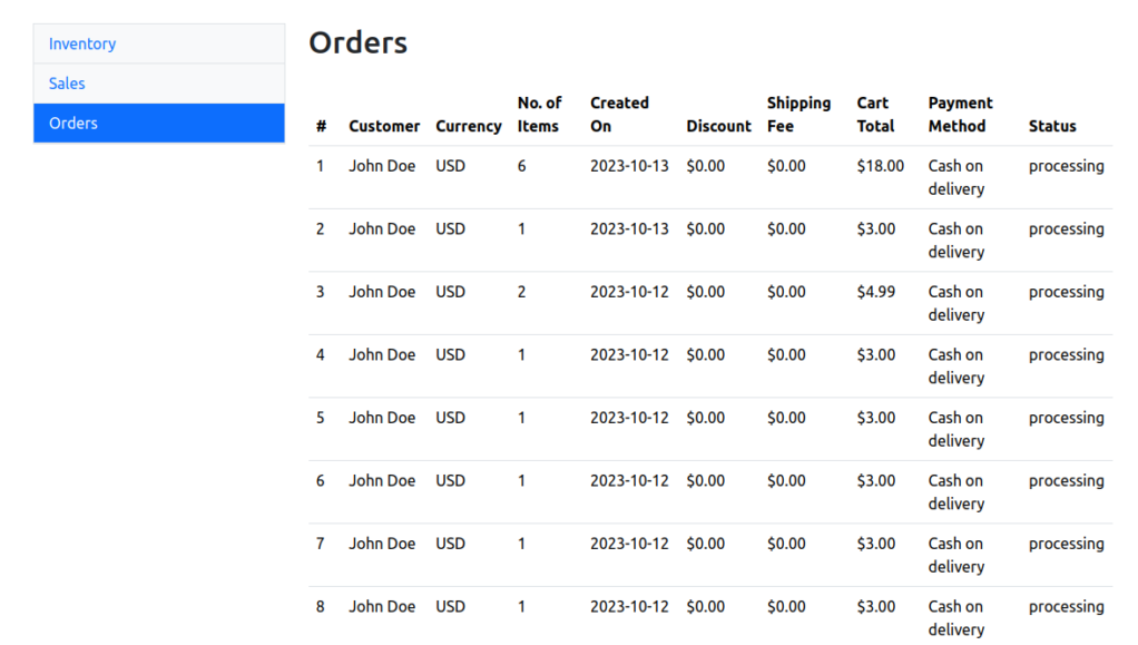 - 当客户下新订单时,会通过电子邮件向店主发送详细的交易提醒。该应用程序还有一个仪表板,显示所有订单及其详细信息。