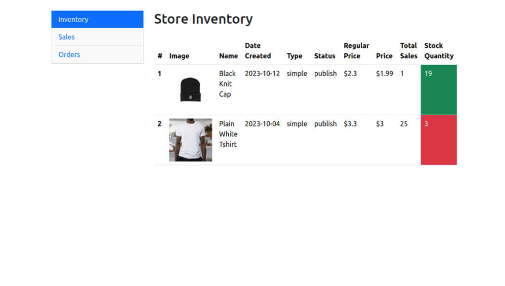 - 库存更新会在仪表板上显示商店库存详情。在这里,您可以轻松跟踪每种产品的库存水平。