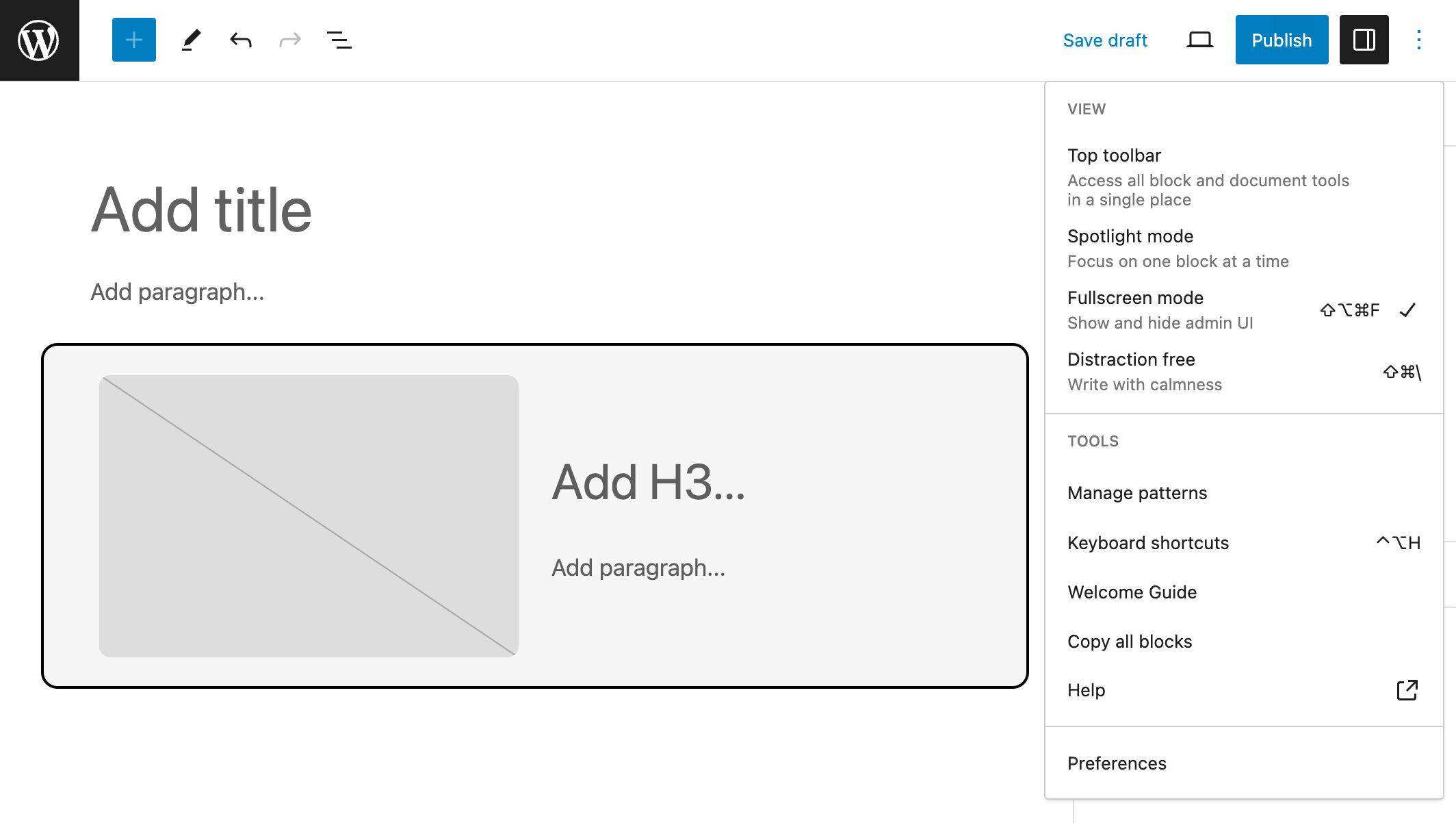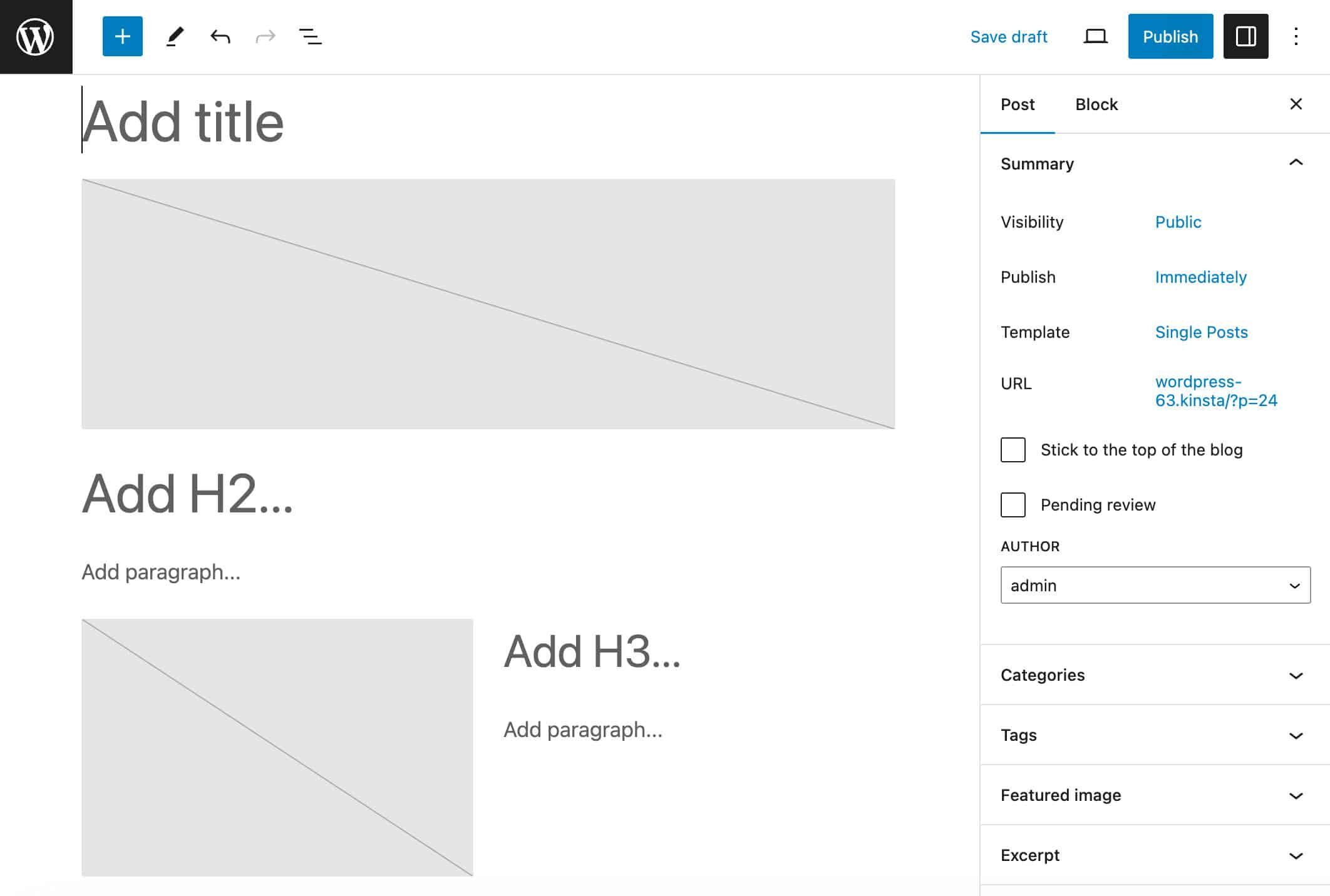 现在,当你创建一篇新文章时,编辑器会自动启动包含图片块、标题和段落的块模板。