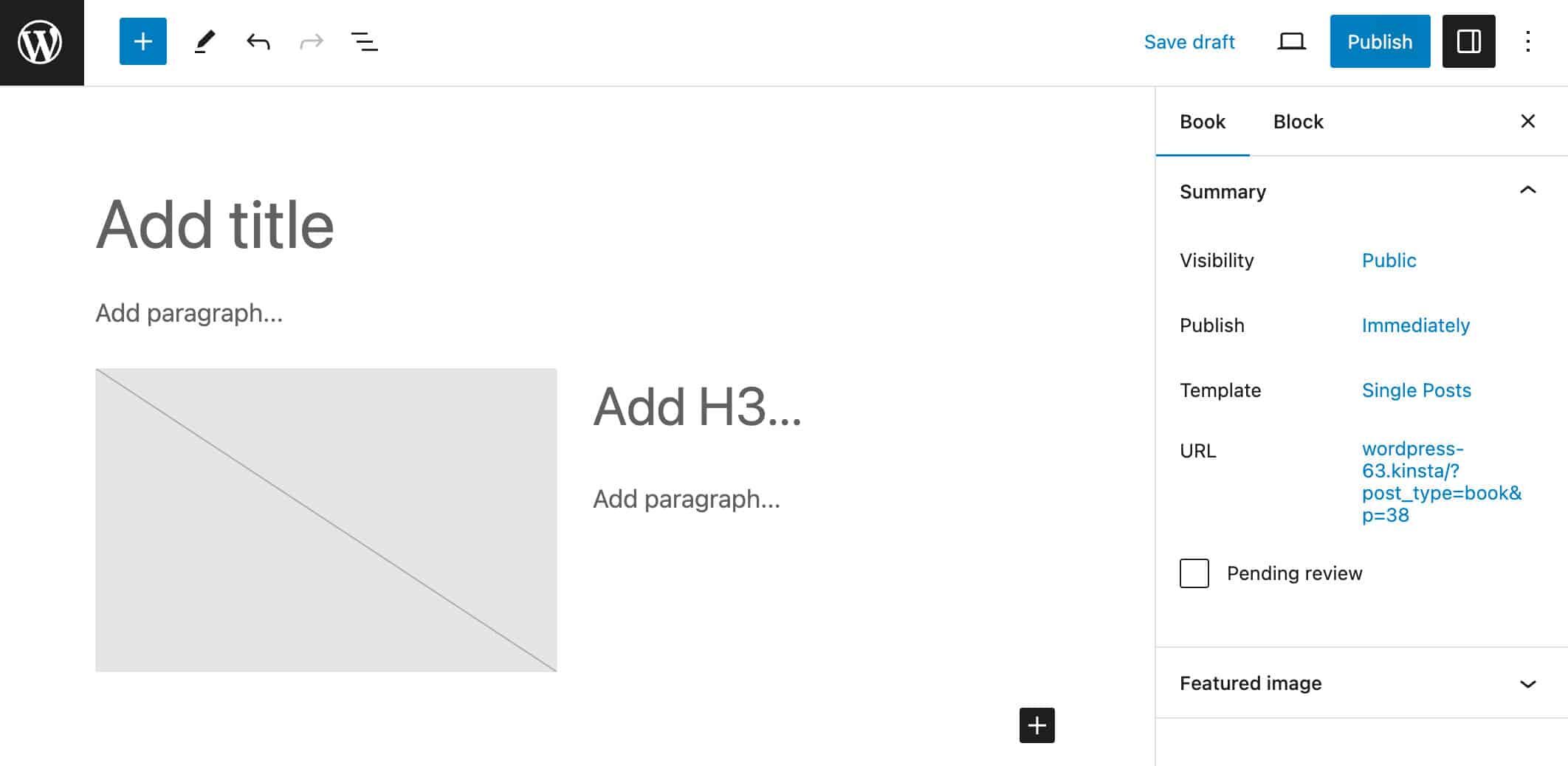 就是这样。下图显示了编辑器界面中图书自定义帖子类型的块模板。