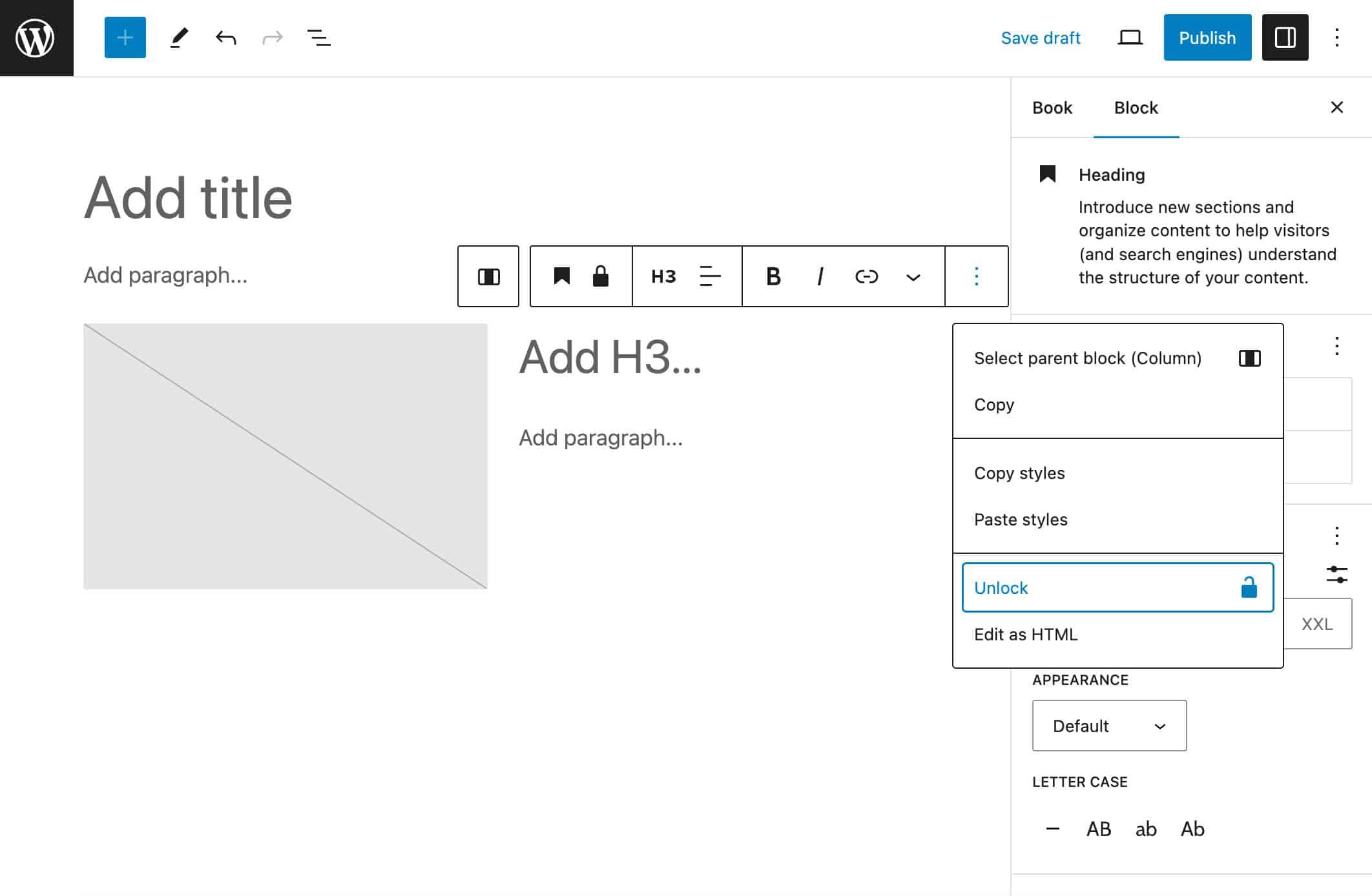 如果你测试了本文讨论的代码,你可能已经意识到,你可以从编辑器界面解锁模板(或其他任何区块)中包含的区块。默认情况下,所有有编辑权限的用户都可以锁定或解锁区块,这样做可以绕过模板设置。