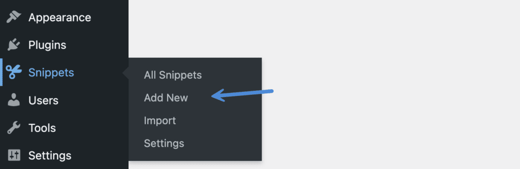 在 WordPress 管理侧边栏的 “Snippets” 下,点击 “Add New”。