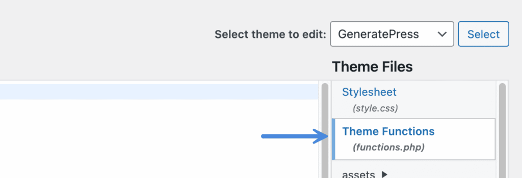 点击进入主题的 functions.php 文件。如果您使用的是子主题,则应使用子主题。
