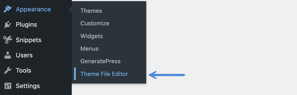 在 WordPress 管理员侧边栏的 “外观” 下,点击 “主题文件编辑器”。