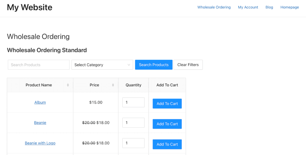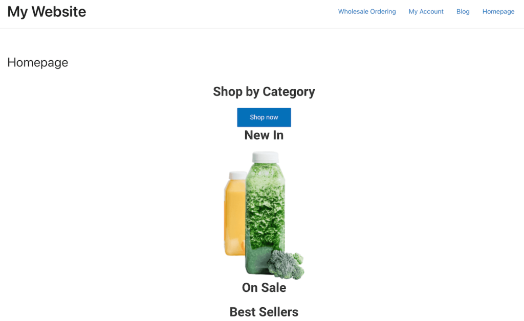 你也可以通过点击每个菜单项来测试导航链接。例如,当我们点击我们的Wholesale Ordering链接时,我们会被重定向到我们添加到菜单的相关页面: