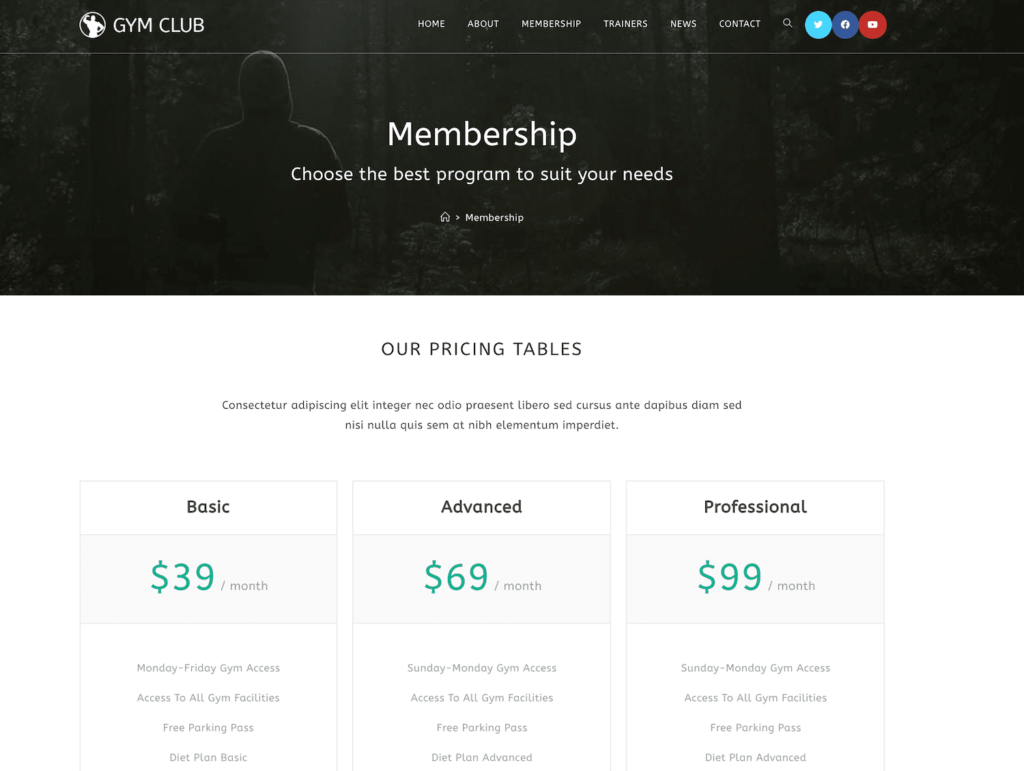 这个多用途的主题配备了一些内置会员功能的演示网站。例如,它的健身房演示为客户提供了会员级别的选择。