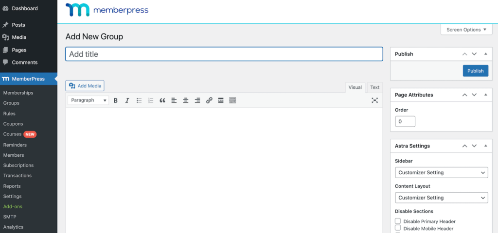 要创建这个重要的页面,请导航到MemberPress > Groups > Add New: