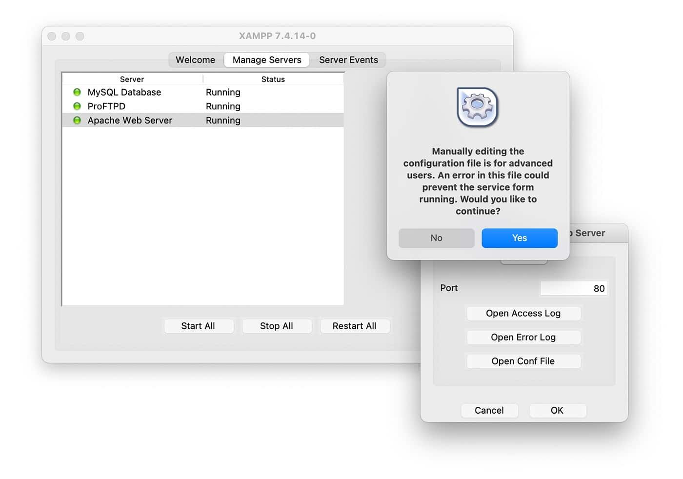 无论如何,最简单的解决方法是简单地修改XAMPP默认设置。但是,解决错误的方法在Windows和macOS之间略有不同。此外,根据您使用的XAMPP版本,界面可能看起来有些不同。我们将提供以下两种操作系统的说明,从Windows开始。