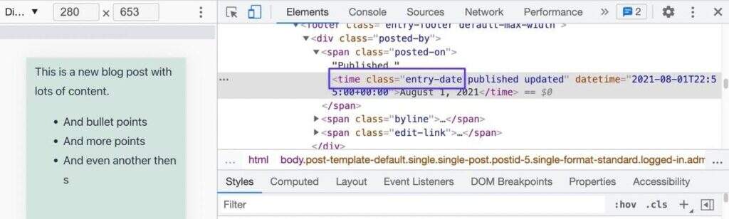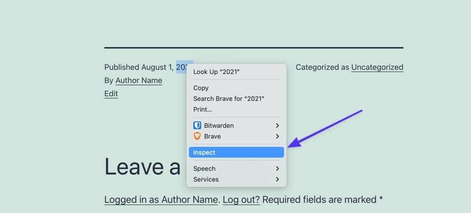 但是CSS代码仍然很好,所以你所要做的就是找出你的主题用于发布日期的类名。为此,导航到博客文章的前端,然后右键单击当前显示的发布日期。选择Inspect选项(这取决于您的浏览器:Chrome使用“ Inspect ”,Firefox使用“ Inspect Element ”,对于Safari,您必须按Option键 + C)