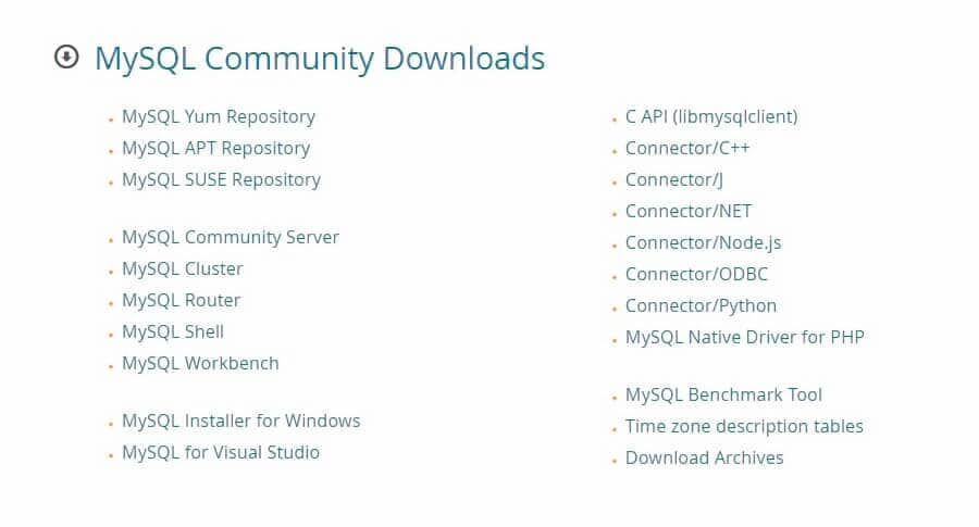 第 1 步:下载适用于Windows的MySQL安装程序。您应该看到两个文件:Web安装程序和备用安装程序。如果您在下载MySQL时有Internet连接,请选择第一个。如果没有,请选择第二个选项。您还可以下载zip存档,解压缩,然后手动安装MySQL。但是您无法使用安装程序向导进行设置。