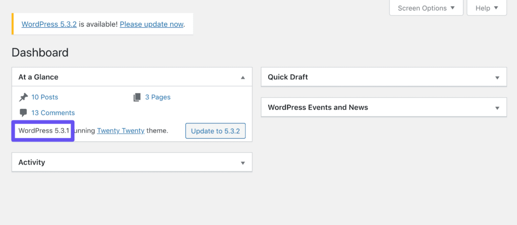 您可能还想禁用自动更新 ,以防止WordPress在此期间安装另一个版本。当您的问题得到解决后,您可以从仪表板的更新屏幕返回到最新版本的WordPress 。