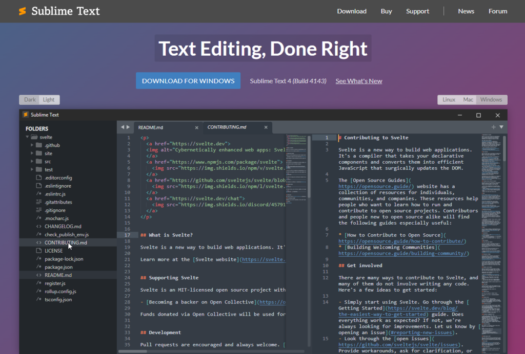 - Sublime Text:这个代码编辑器有很多功能,包括提示。