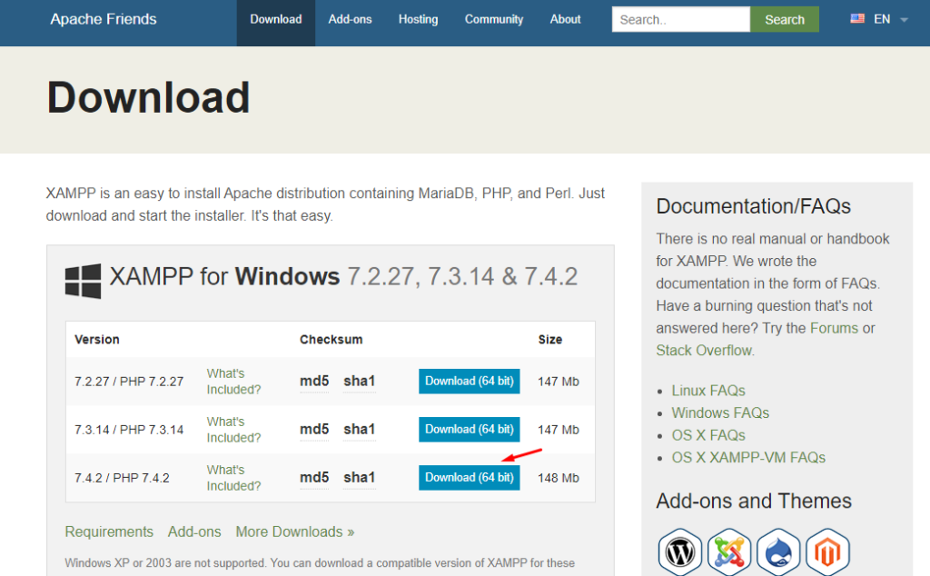 在本指南中,我将使用XAMPP,可从Apache网站下载。