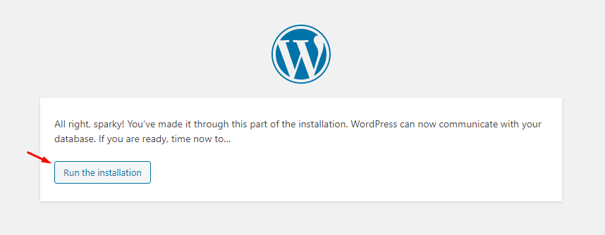 下一个屏幕将确认数据库配置成功 点击’Run the installation’,开始WordPress的安装过程。