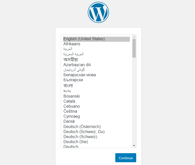 一旦数据库被创建,通过访问以下网址启动WordPress安装设置。