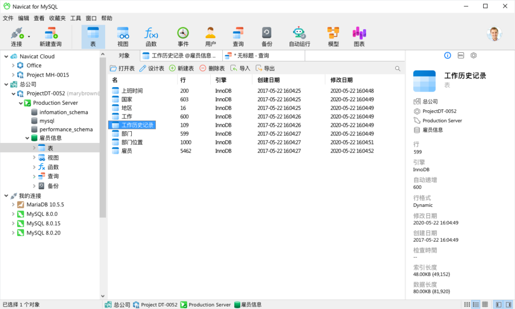 Navicat for MySQL 是一个强大的 MySQL GUI 工具,可以在任何时候自动保存和共享你的连接设置、模型和查询到 Navicat Cloud。你可以用查询生成器编写和编辑查询,只需要有限的 SQL 知识,而不用担心语法问题。